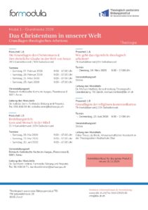 Das Modul 1 „Das Christentum in unserer Welt. Grundlagen theologischen Arbeitens“ besteht aus unterschiedlichen Modulteilen: