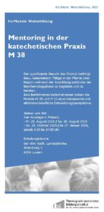 Der erfolgreiche Abschluss des Basismoduls M 38 ist zugleich Voraussetzung für den Erwerb des Modulzertifikates von M 22 «Leitungsaufgaben im Katechesebereich».
