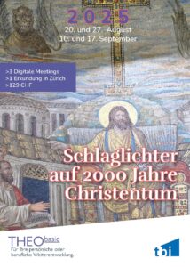 Der Kurs ist für alle offen – egal ob Sie tiefer in die Geschichte eintauchen, den eigenen Glauben reflektieren oder einfach zentrale Inhalte des Christentums verstehen möchten. Wir arbeiten gemeinsam, frontal, im Austausch und je für sich – mit Input-Referaten, Texten, Orten und Bildern aus Geschichte und Gegenwart, persönlichen Erfahrungen und mit mehr oder weniger grossen Lebensfragen. Lassen Sie sich mit diesem THEObasic-Kurs auf eine Reise ein, die Ihnen religiöse und kulturelle Zusammenhänge aufzeigt und die Grundlage für eine persönliche Standortbestimmung schafft.